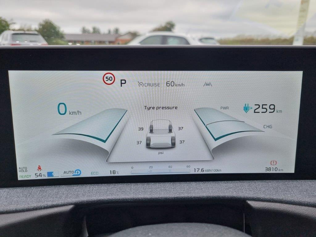 Bilen kommer med 7 års fabriksgaranti fra bilens 1. indregistreringsdato. Elbils info: Rækkevidde: (WLTP): 528 km Hjemmeladning: 11 kw (ca. 8 timer) Hurtigladning: (10-80% = ca. 18 min) EL-sammenklappelige sidespejle, Regnsensor, 19" Alufælge, LED baglygter, LED Kørelys, Elektronisk P-bremse, El-justerbare sidespejle m.varme, Parkeringssensor for & bag, Aut. nedblændeligt bakspejl, Apple CarPlay, LED belysning v/makeupspejle, Varme i forsæder, LED forlygter, Adaptiv fartpilot, Trådløs telefonopladning, Multifunktionel Smart Key, Delkunstlædersæder, 12,3" Fuld Digital Instrumentering, Android Auto, Træthedsregistrering,